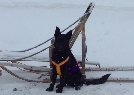 | german shepherd dog black harness sled sleigh |